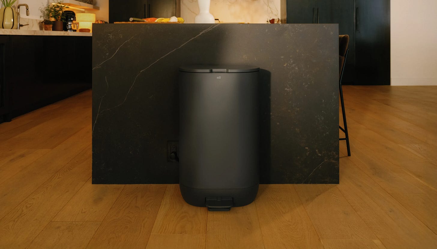 Matt Rogers, a cofounder of Nest, is continuing to innovate in the home tech space with Mill. Mill is a food recycler that turns scraps into âfood groundsâ (odorless, nutrient-rich powder). By generating lighter food waste, Mill aims to make garbage collection more efficient. The food grounds can also be used as compost in your home garden or collected by Mill to be turned into chicken feed for farms.